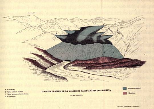 Collomb, E. 1847 Preuves de l'existence d'anciens glaciers dans les vallées des Vosges. Paris, Victor Masson http://books.google.com/books?id=8usTAAAAQAAJ
